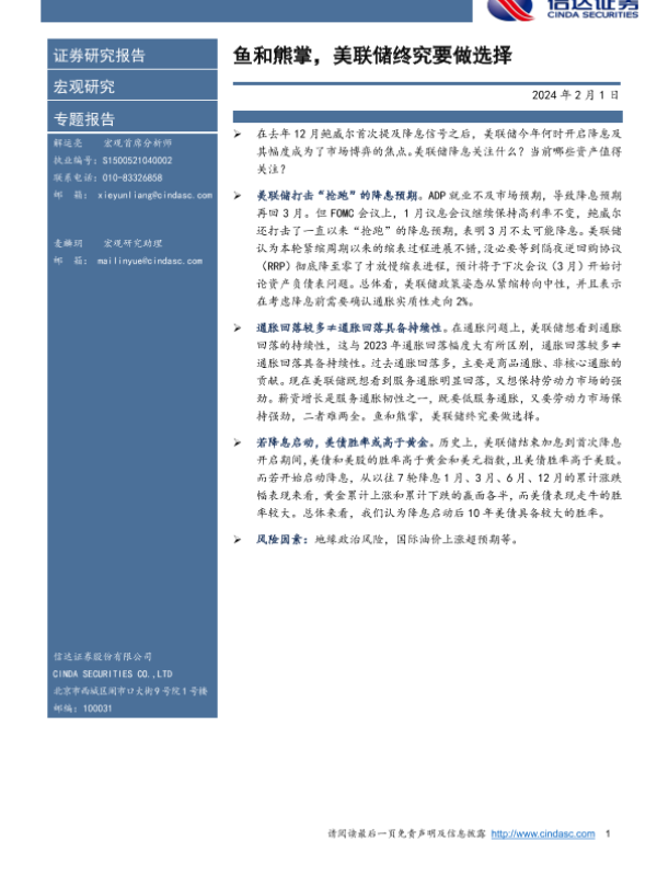 【信达证券】【20240201】鱼和熊掌,美联储终究要做选择-10页