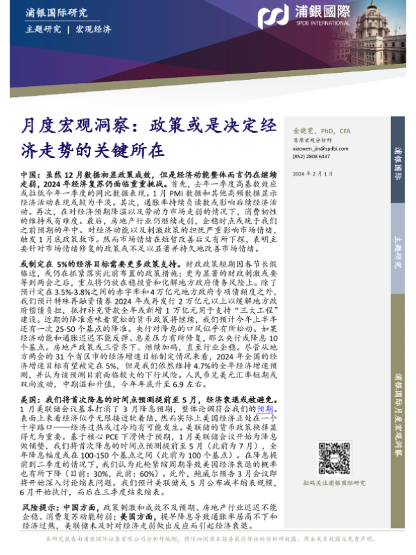【浦银国际】【20240201】月度宏观洞察:政策或是决定经济走势的关键所在-29页
