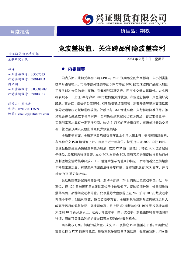【兴证期货】【20240202】期权月度报告:隐波差极值,关注跨品种隐波差套利-23页