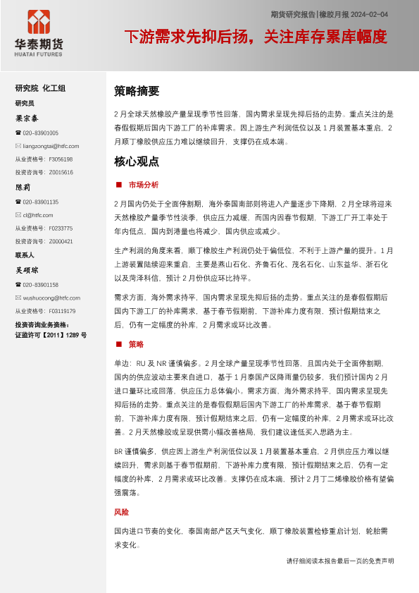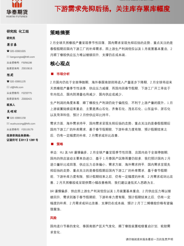 【华泰期货】【20240204】橡胶月报:下游需求先抑后扬,关注库存累库幅度-18页