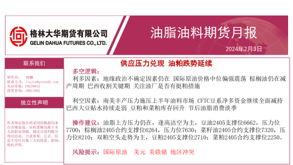 【格林大华期货】【20240203】油脂油料期货月报:供应压力兑现 油粕跌势延续-36页