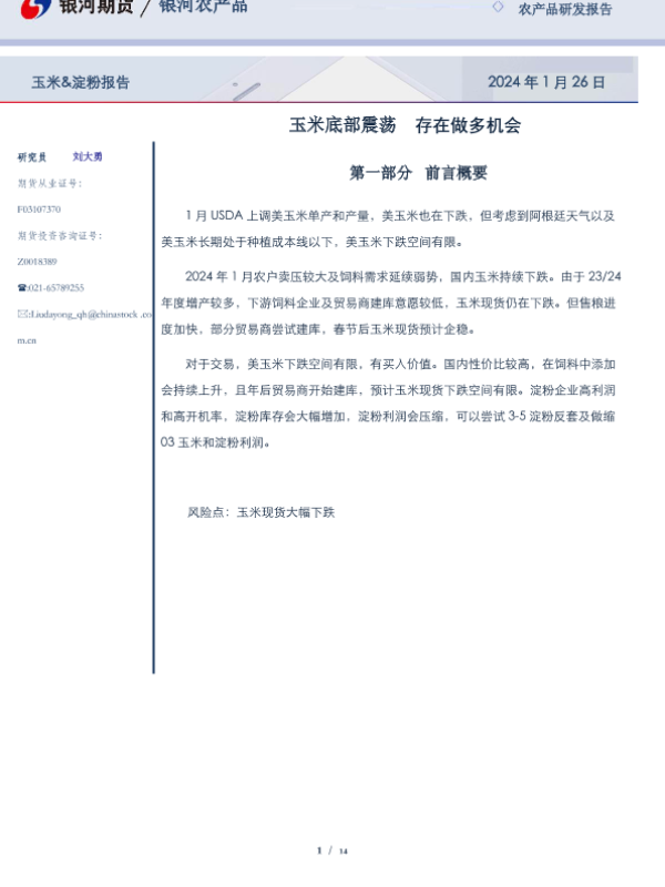 【银河期货】【20240126】玉米&淀粉报告:玉米底部震荡 存在做多机会-14页