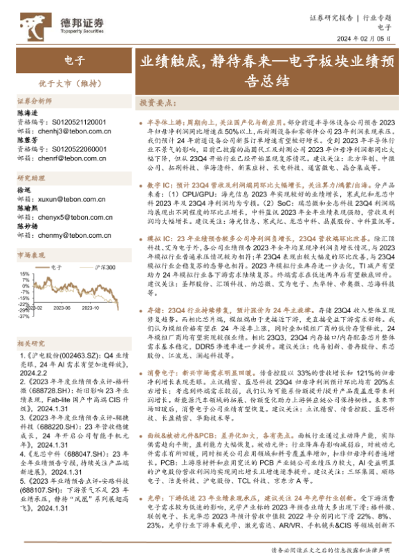 【德邦证券】【20240205】电子板块业绩预告总结:业绩触底,静待春来-14页
