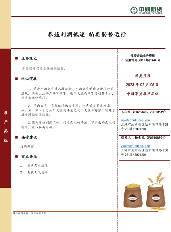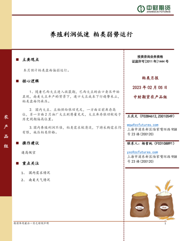 【中财期货】【20240205】粕类月报:养殖利润低迷 粕类弱势运行-10页