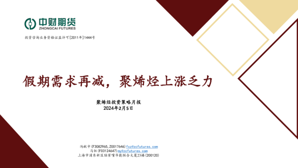 【中财期货】【20240205】聚烯烃投资策略月报:假期需求再减,聚烯烃上涨乏力-25页