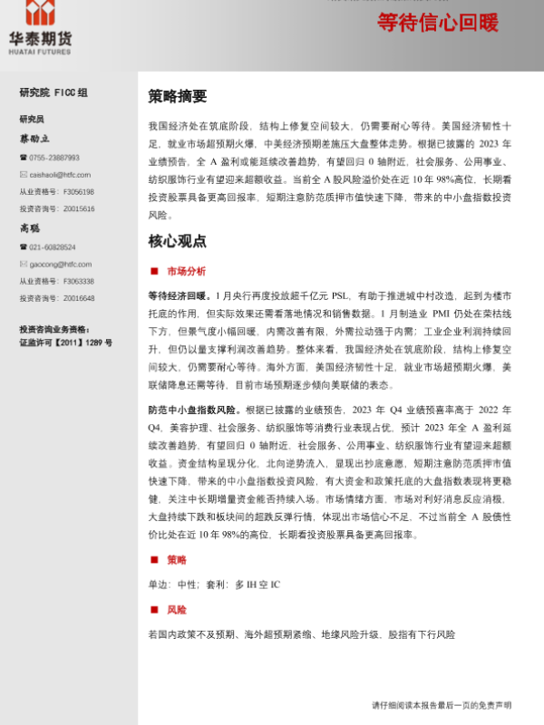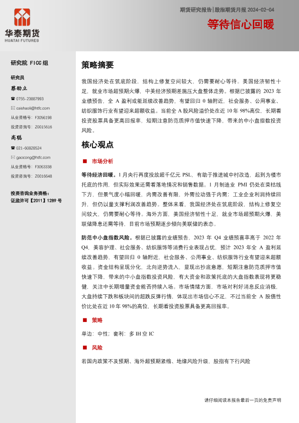 【华泰期货】【20240204】股指期货月报:等待信心回暖-17页