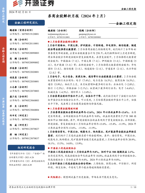 【开源证券】【20240201】金融工程定期:券商金股解析月报(2024年2月)-10页