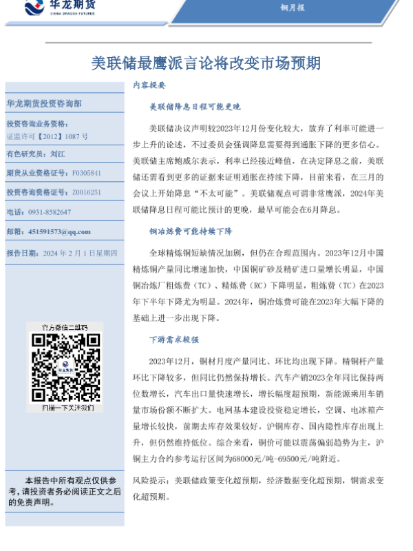 【华龙期货】【20240201】铜月报:美联储最鹰派言论将改变市场预期-19页