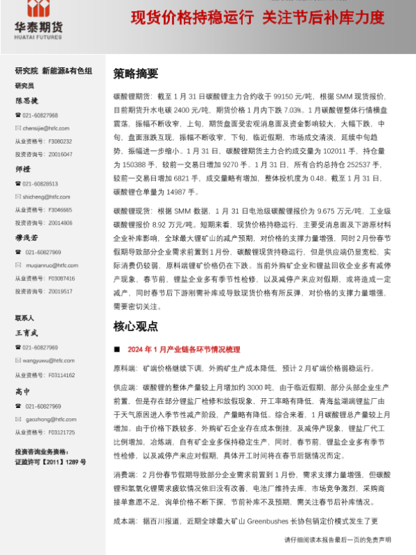 【华泰期货】【20240204】锂钴月报:现货价格持稳运行,关注节后补库力度-25页