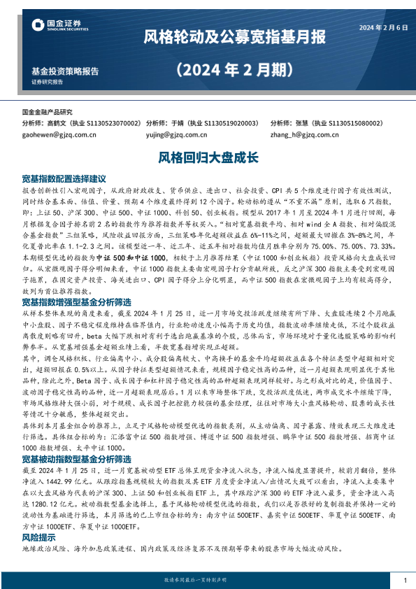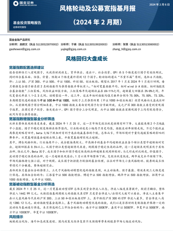 【国金证券】【20240206】风格轮动及公募宽指基月报(2024年2月期):风格回归大盘成长-16页