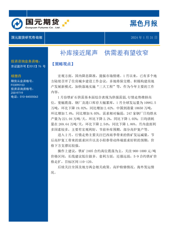 【国元期货】【20240131】黑色月报:补库接近尾声 供需差有望收窄-13页