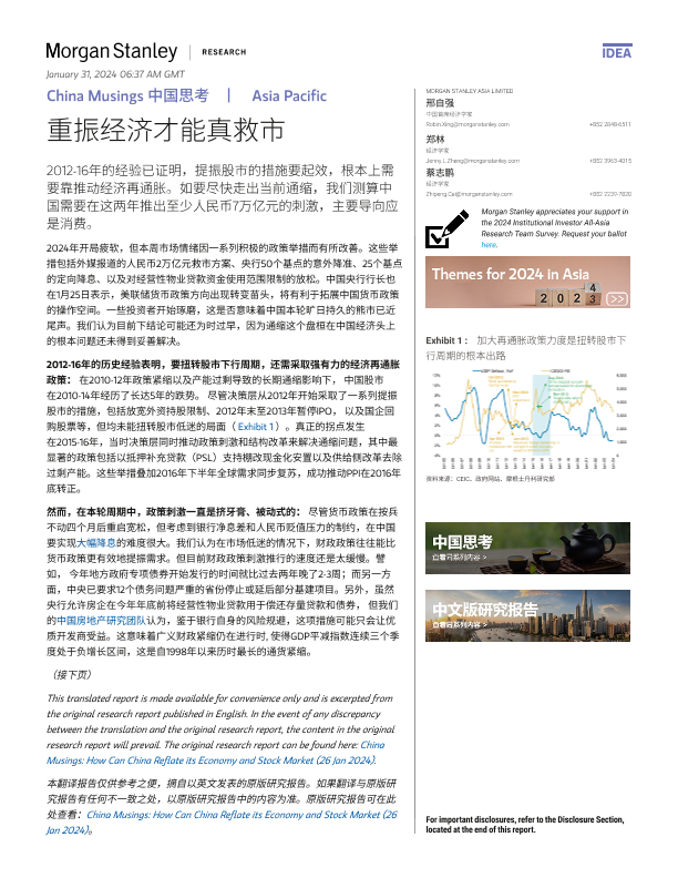 【Morgan Stanley】【20240126】中国思考 重振经济才能真救市-5页