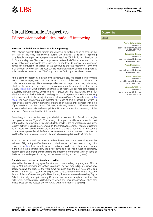 【UBS Securities LLC】【20240130】Global Economic Perspectives US recession probabilities trade-off improving-8页