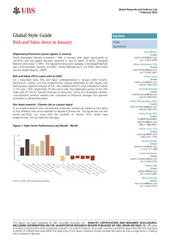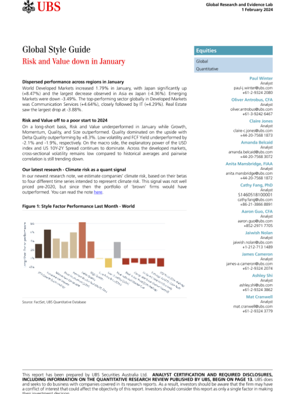 【UBS Securities Australia Ltd.】【20240201】Global Style Guide Risk and Value down in January-17页