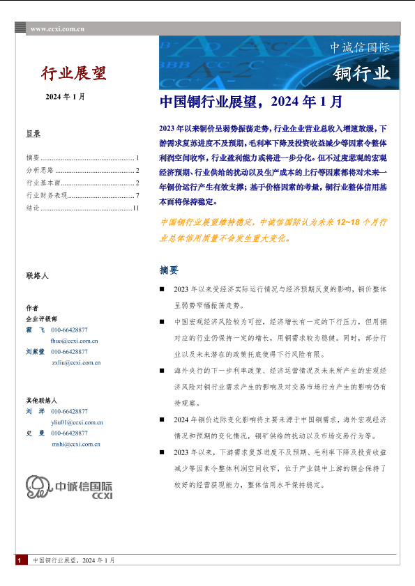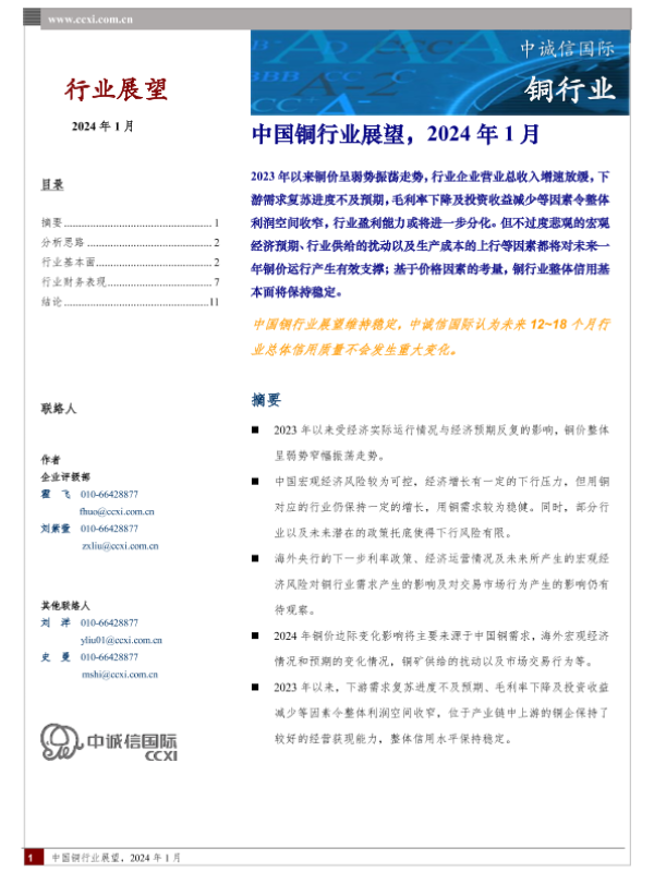 价格走势 信用基本面 宏观经济 市场需求 铜行业