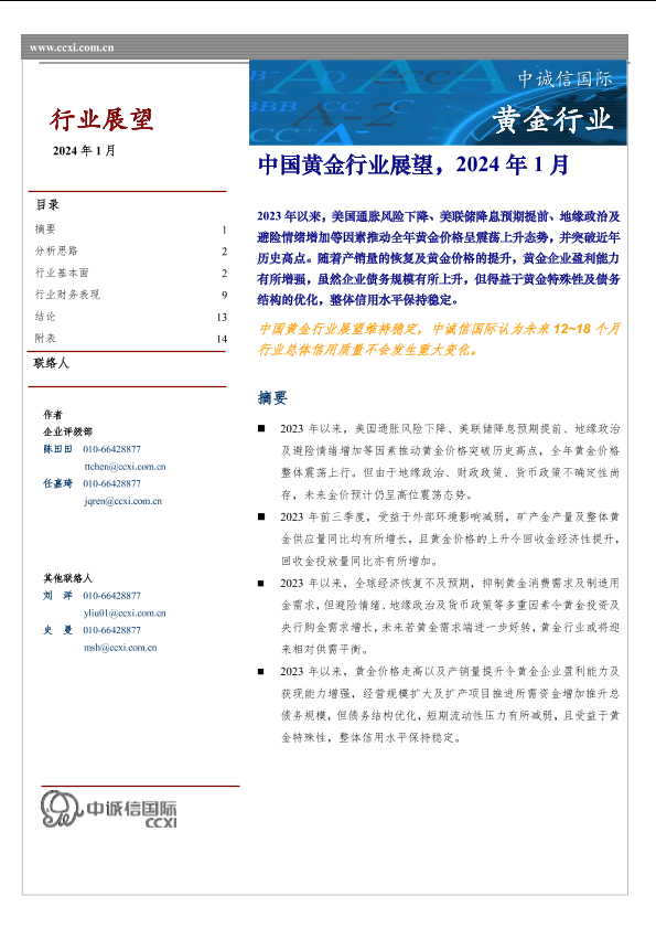 【中诚信国际】【202401】中国黄金行业展望(2024年1月)-16页