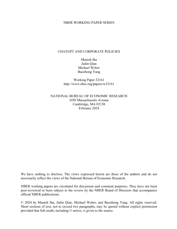 【National Bureau of Economic Research (NBER)】【202402】ChatGPT与公司政策-68页