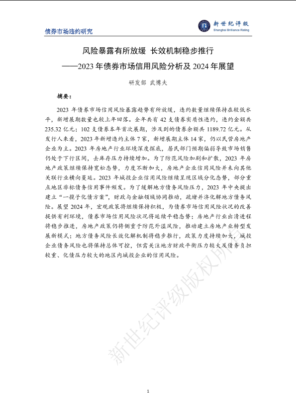 【研发部 武博夫】【20230101】风险暴露有所放缓 长效机制稳步推行——2023年债券市场信用风险分析及2024年展望-21页