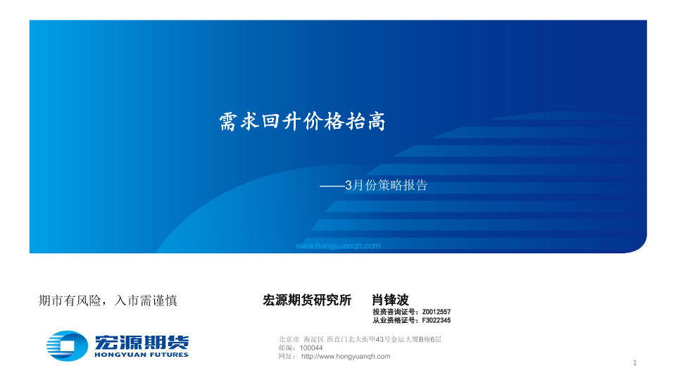 【宏源期货】【20240228】3月份策略报告:需求回升价格抬高-16页
