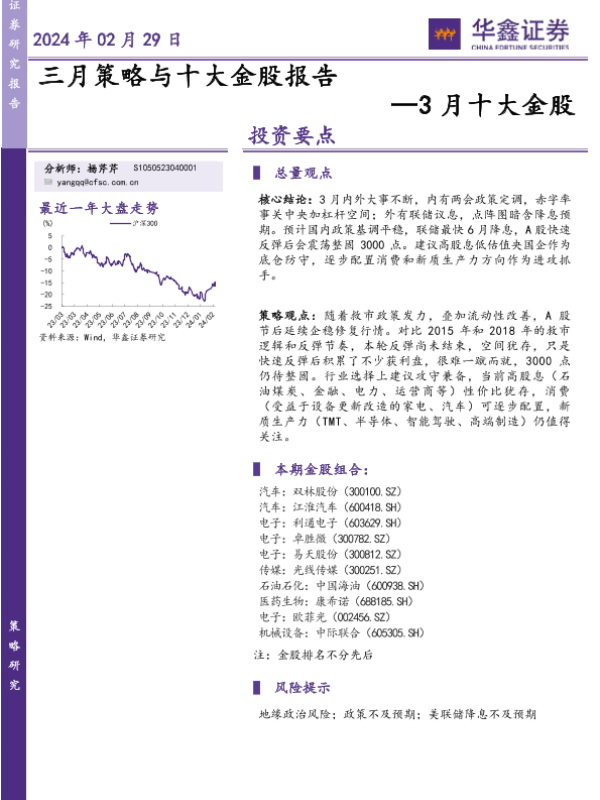 【华鑫证券】【20240229】3月十大金股:三月策略与十大金股报告-18页