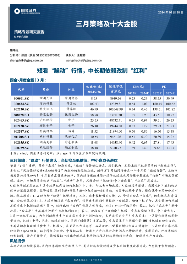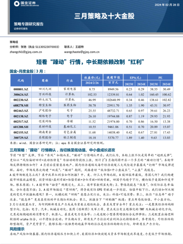 【国金证券】【20240228】三月策略及十大金股:短看“躁动”行情,中长期依赖改制“红利”-16页