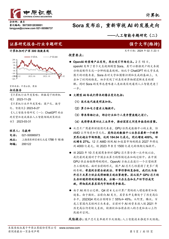【中原证券】【20240223】Sora发布后,重新审视AI的发展走向-11页