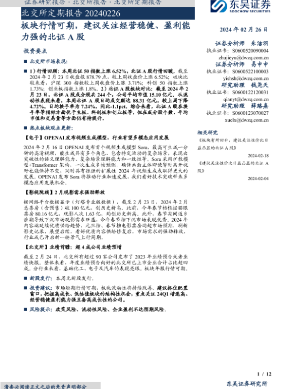 【东吴证券】【20240226】北交所定期报告:板块行情可期,建议关注经营稳健、盈利能力强的北证A股-12页
