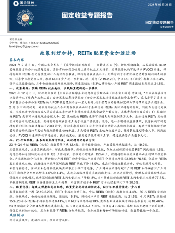 【国金证券】【20240226】固定收益专题报告:政策利好加持,REITs配置资金加速进场-13页