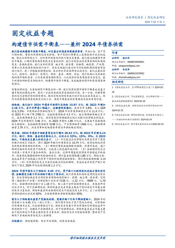 【国盛证券】【20240301】固定收益专题:兼析2024年债券供需-构建债市供需平衡表-20页