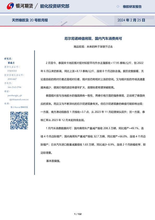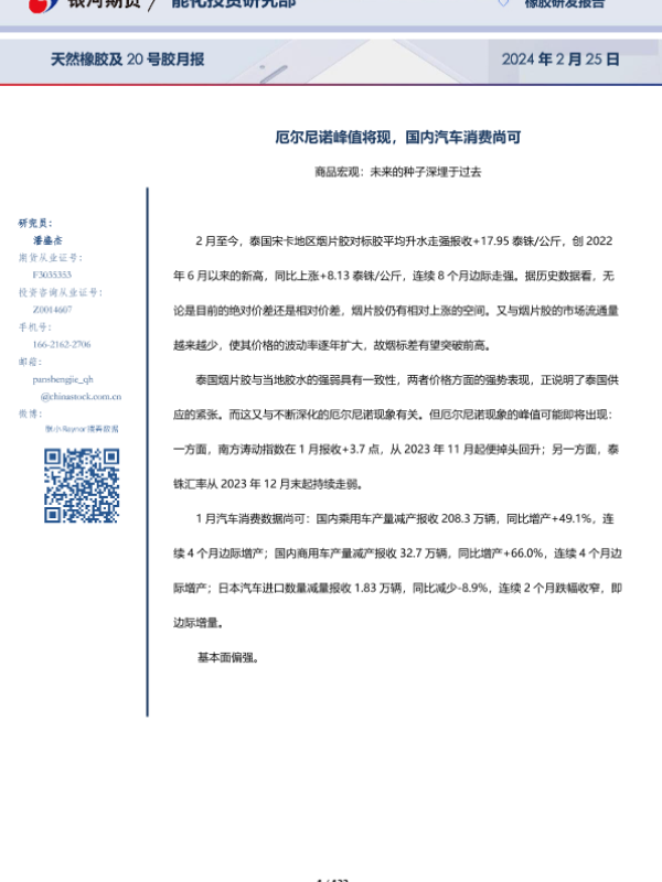 【银河期货】【20240225】天然橡胶及20号胶月报:厄尔尼诺峰值将现,国内汽车消费尚可-132页
