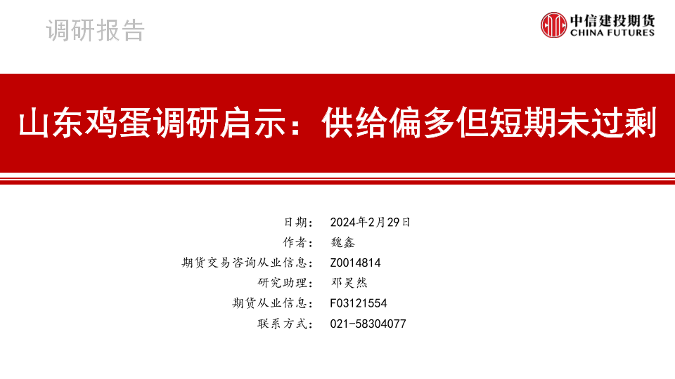 【中信建投期货】【20240229】山东鸡蛋调研启示:供给偏多但短期未过剩-25页