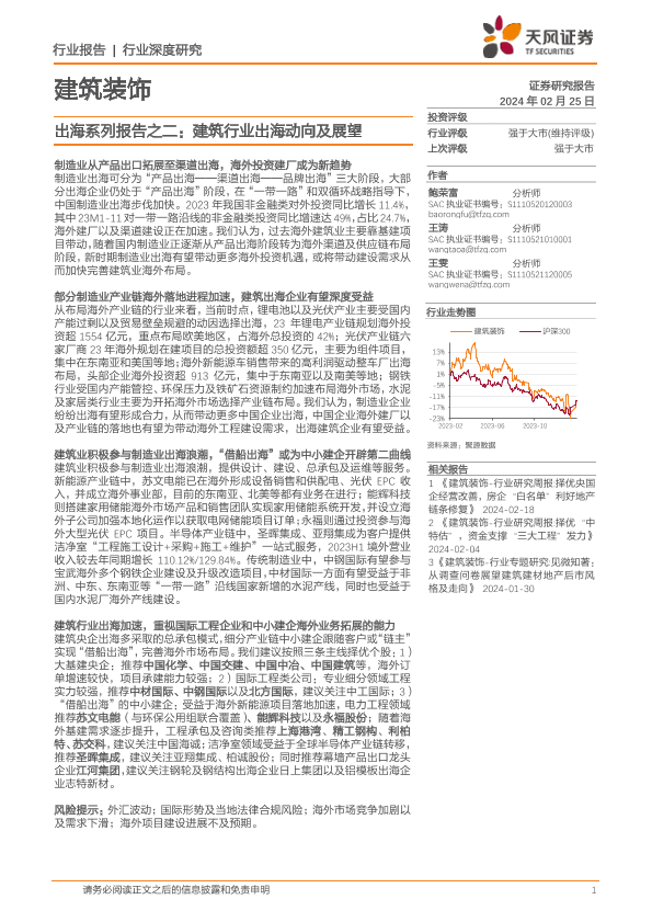 【天风证券】【20240225】建筑装饰出海系列报告之二:建筑行业出海动向及展望-29页