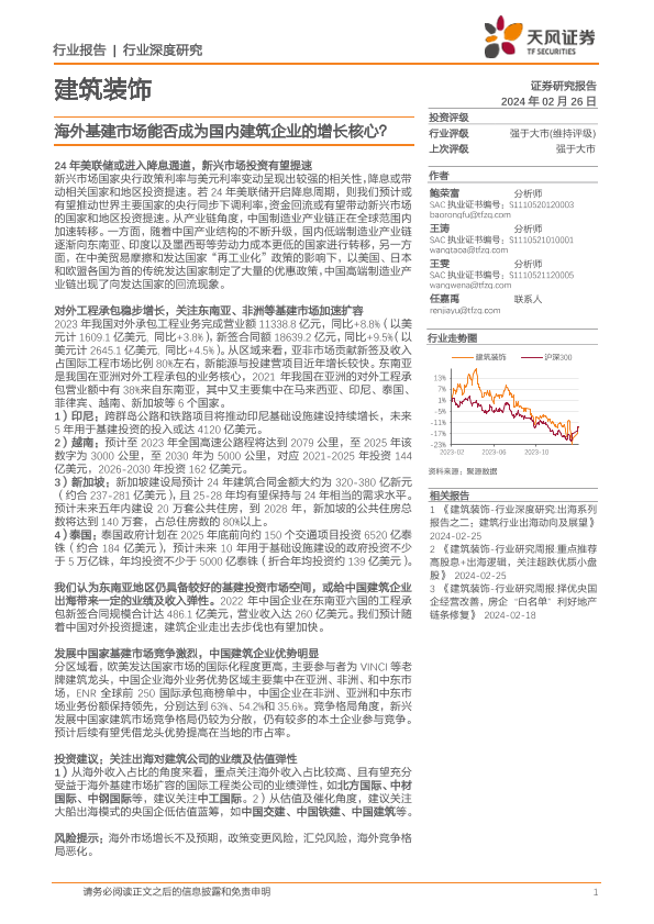 【天风证券】【20240226】建筑装饰行业深度研究:海外基建市场能否成为国内建筑企业的增长核心?-24页