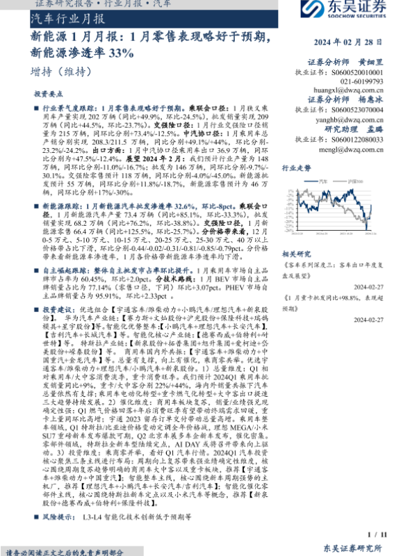 【东吴证券】【20240228】新能源1月月报:1月零售表现略好于预期,新能源渗透率33%-11页