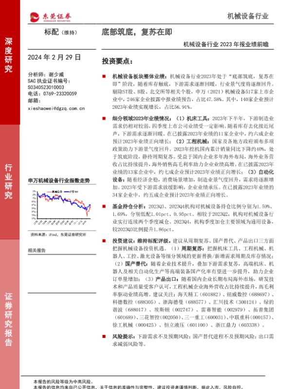 【东莞证券】【20240229】机械设备行业2023年报业绩前瞻:底部筑底,复苏在即-22页