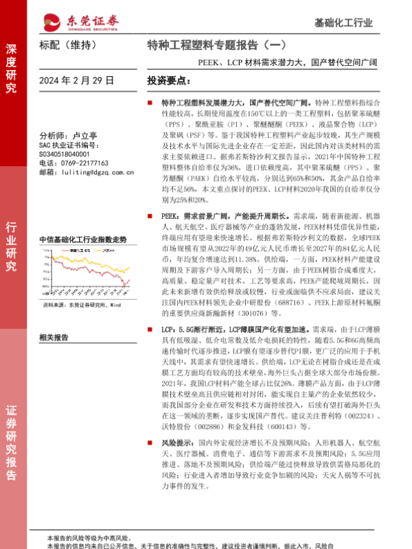 【东莞证券】【20240229】特种工程塑料专题报告(一):PEEK、LCP材料需求潜力大,国产替代空间广阔-28页