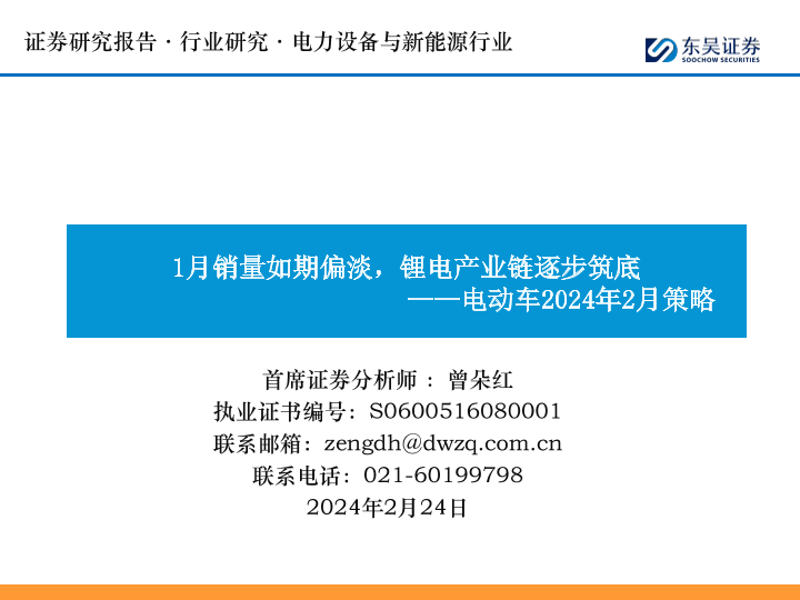 【东吴证券】【20240224】电动车2024年2月策略:1月销量如期偏淡,锂电产业链逐步筑底-84页