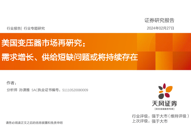【天风证券】【20240227】美国变压器市场再研究:需求增长、供给短缺问题或将持续存在-18页