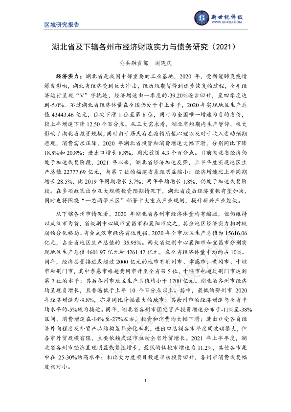 【新世纪评级】【20210101】湖北省及下辖各州市经济财政实力与债务研究(2021)-30页