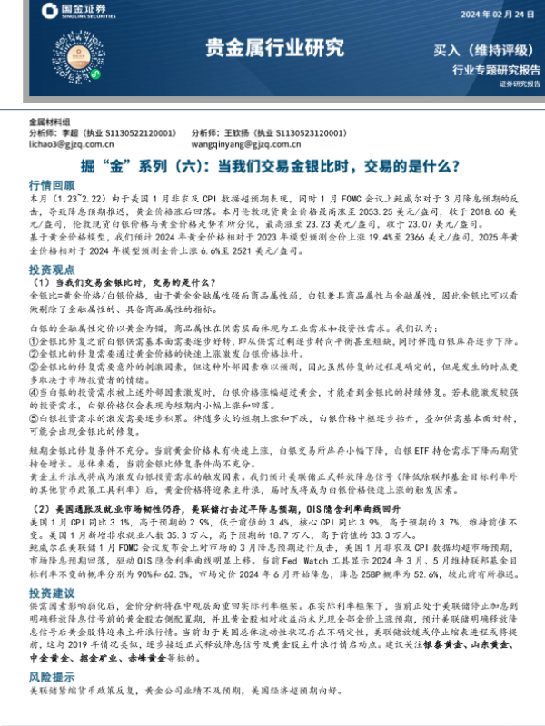 【国金证券】【20240224】贵金属行业研究:掘“金”系列(六):当我们交易金银比时,交易的是什么?-32页