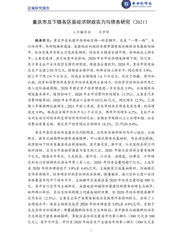 【新世纪评级】【20210101】重庆市及下辖各区县经济财政实力与债务研究(2021)-35页
