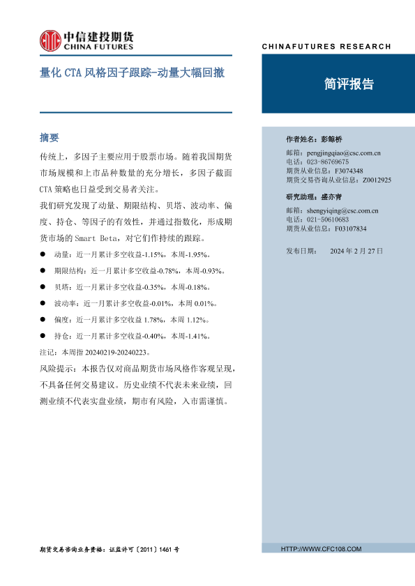【中信建投期货】【20240227】量化CTA风格因子跟踪:动量大幅回撤-14页