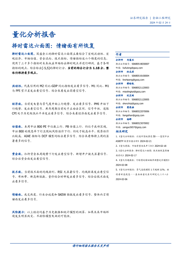 【国盛证券】【20240224】择时雷达六面图:情绪面有所恢复-23页