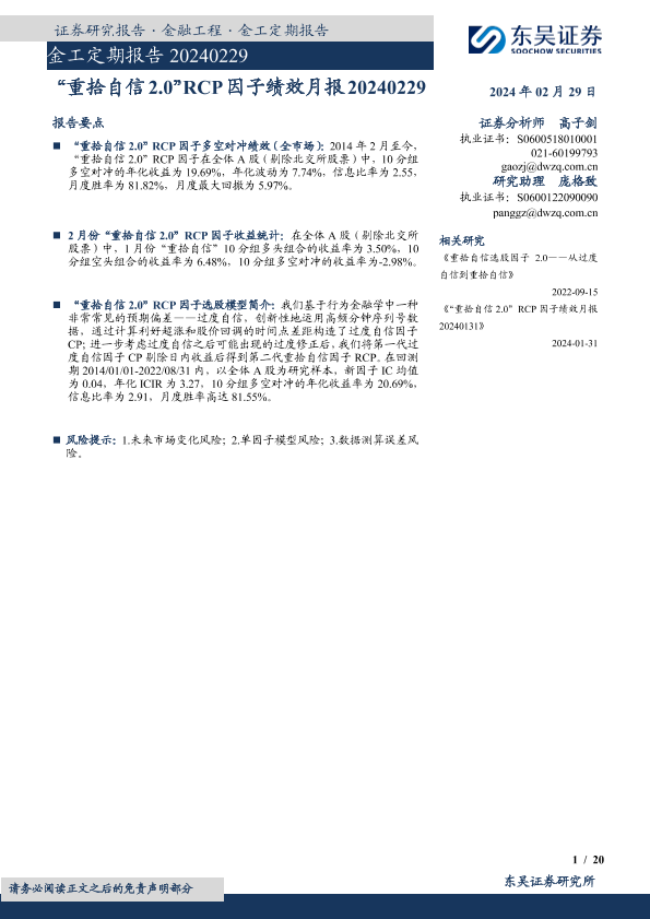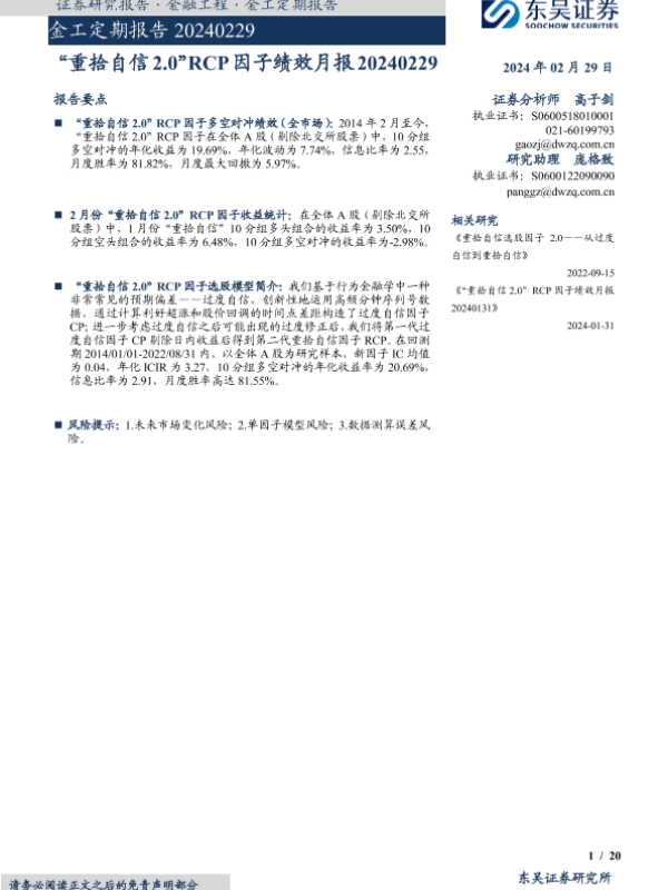 【东吴证券】【20240229】“重拾自信2.0”RCP因子绩效月报-20240229-20页