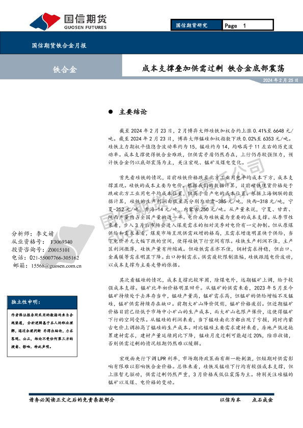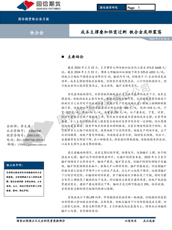【国信期货】【20240225】铁合金月报:成本支撑叠加供需过剩 铁合金底部震荡-15页