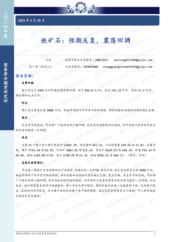 【国泰君安期货】【20240225】铁矿石:预期反复,震荡回调-11页