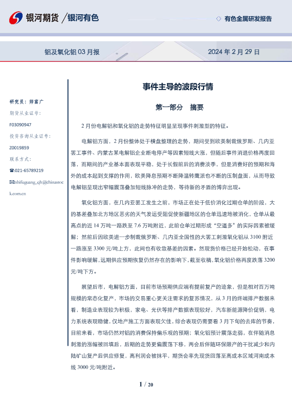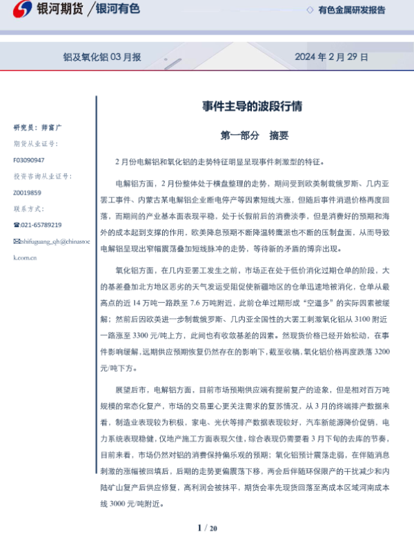 【银河期货】【20240229】铝及氧化铝03月报:事件主导的波段行情-20页