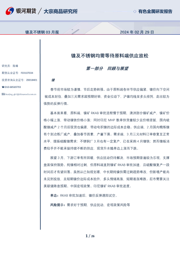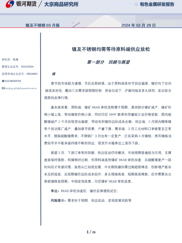 【银河期货】【20240229】镍及不锈钢03月报:镍及不锈钢均需等待原料端供应放松-26页
