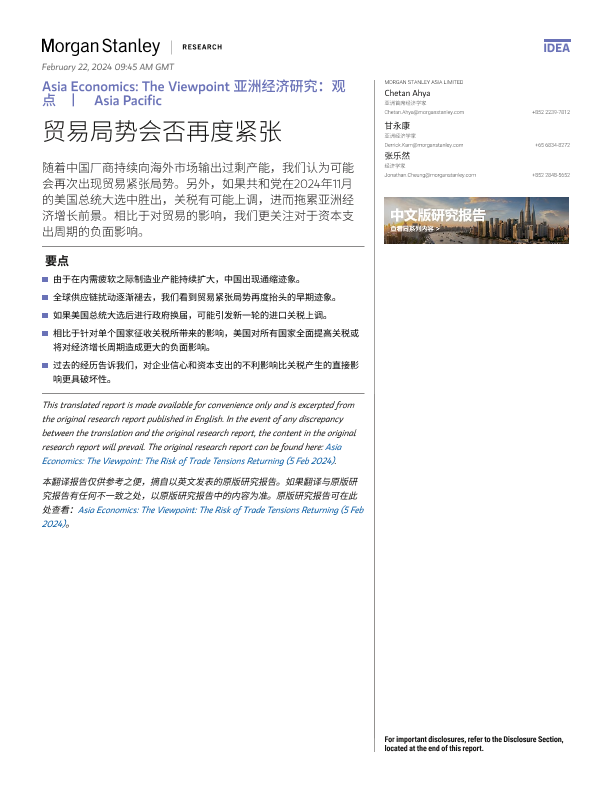 【Morgan Stanley】【20240205】亚洲经济研究:观点 贸易局势会否再度紧张-11页