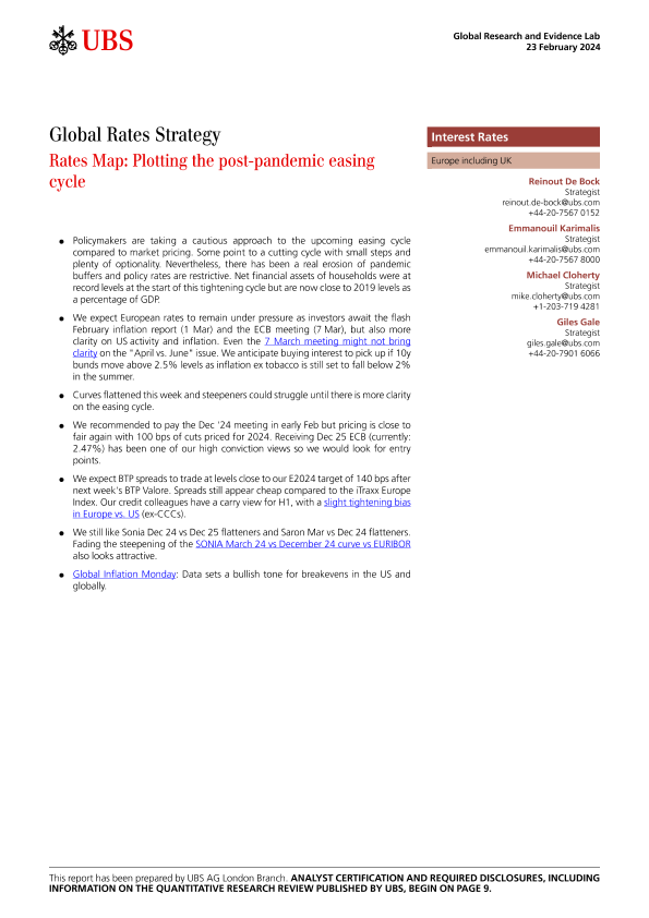 【UBS AG London Branch】【20240223】Rates Map Plotting the post-pandemic easing cycle-13页